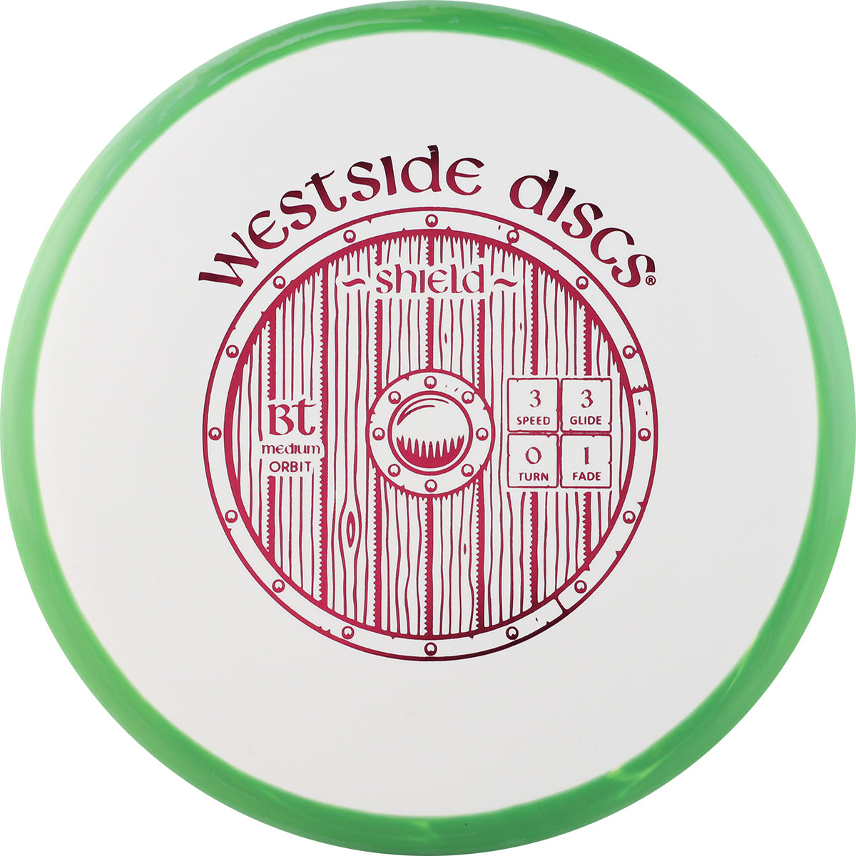 Westside’s newest putter on the market, the Shield, is the next step up from the Swan. Designed with a tacky grip in the BT plastics, the Shield is a little thicker and has a small bead on the rim. It holds a stable line when throwing as an approach and a straight line into the chains while putting.Flight numbers