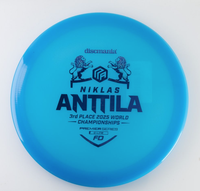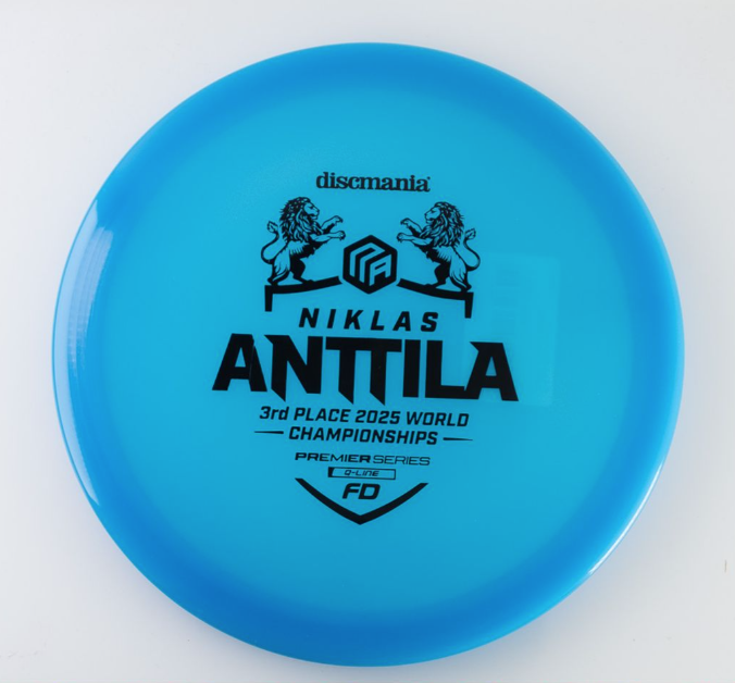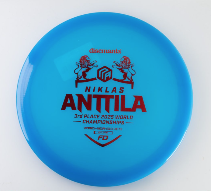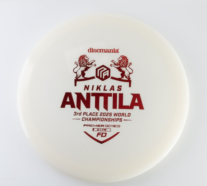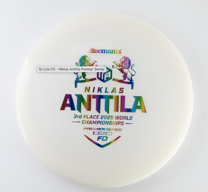Q-Line FD – Niklas Anttila Premier Series Celebrate excellence with the Q-Line FD Niklas Anttila Premier Series, honoring Niklas Anttila’s incredible 3rd place finish at the 2025 PDGA World Championship. This disc is built for players who demand precision, control, and championship-level performance. Why Premier Series? The Premier Series represents discs endorsed by elite professionals who have proven themselves on the biggest stages. Niklas Anttila’s podium finish at Worlds is a testament to skill and consistency—qualities reflected in every throw of this FD. Key Features Q-Line Plastic: Premium durability and grip for confident throws in all conditions. Flight Profile: Straight, controllable flights with dependable finish—ideal for shaping lines and hitting fairways. Performance Inspired: Designed for players who want pro-level reliability and finesse. Flight Numbers: Speed 7 | Glide 6 | Turn 0 | Fade 1 Whether you’re threading tight gaps or attacking open fairways, the Q-Line FD Niklas Anttila Premier Series delivers the accuracy and glide you need to elevate your game. Good for Straight fairway drives Anhyzers Rollers For beginners, advanced and pro players alike.