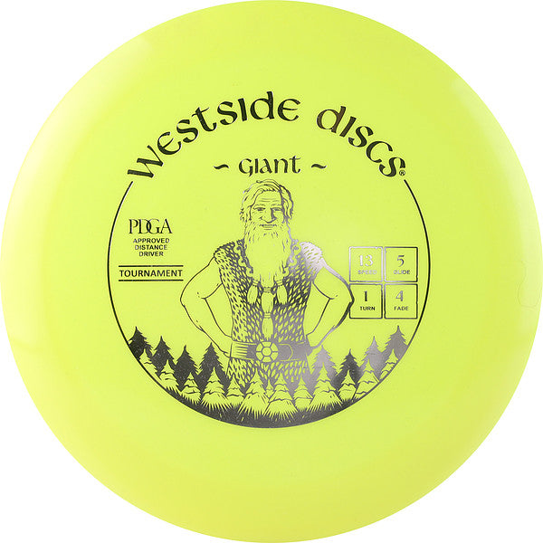 The Giant is our most reliable over stable high speed driver. Made for any size arm the Giant is just what it sounds like, Giant hyzer lines. For professional players it will be your go to hyzer disc for shots over 350 feet. For slower arm speeds it is a good utility disc for all conditions. Many players find that the Giant is a great forehand disc that can hold the high speed of a forehand release. If you are looking for fast and reliable look no further.Flight numbers
