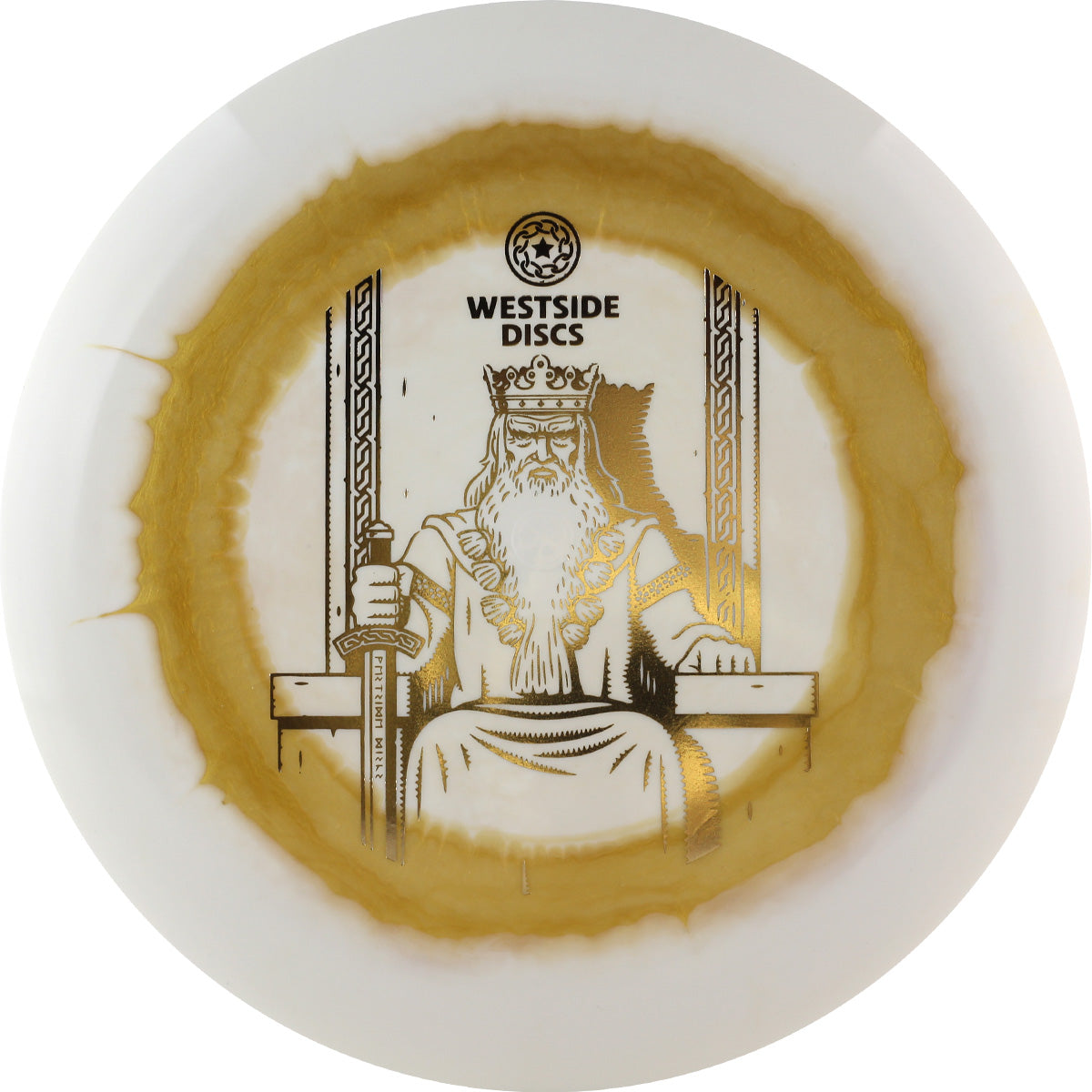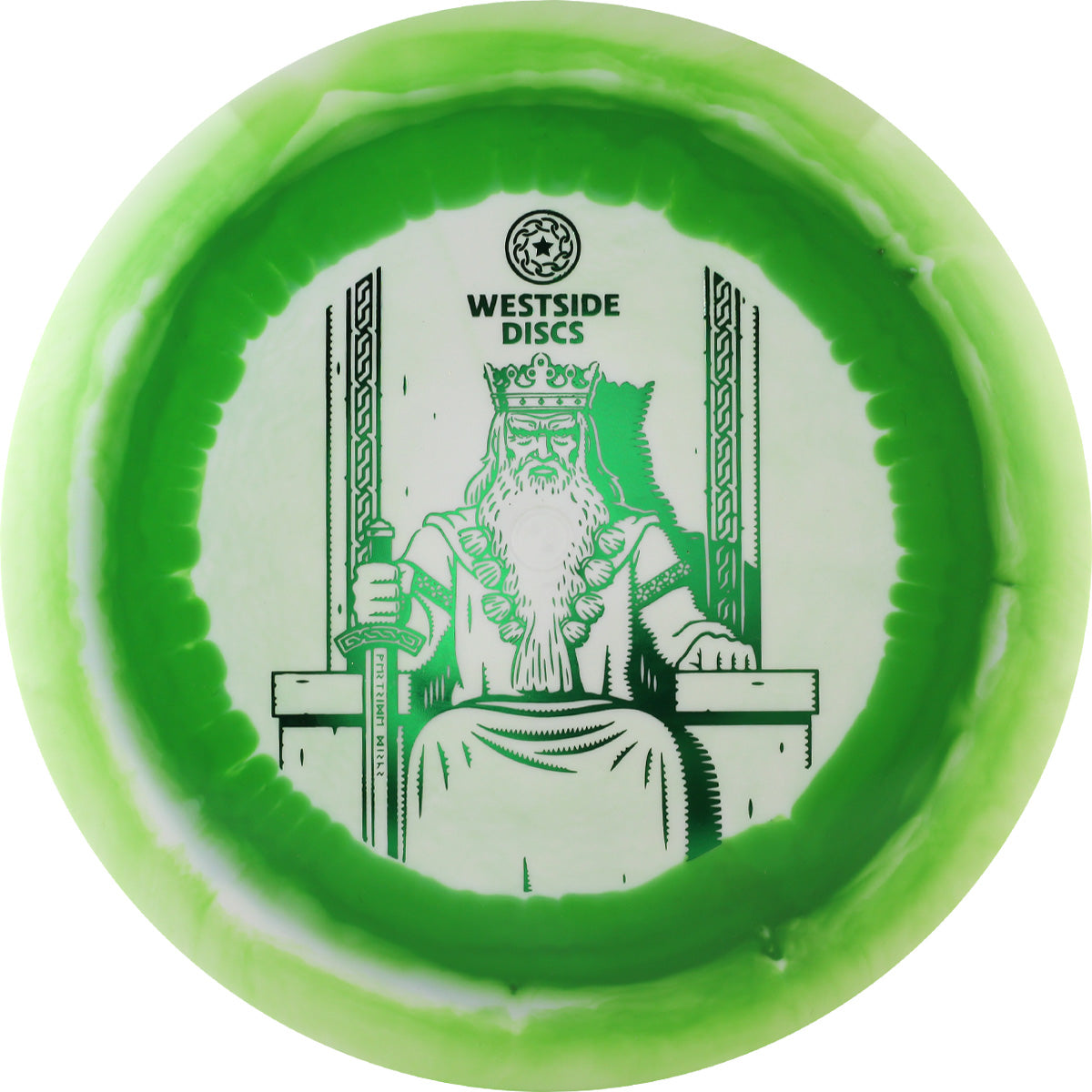 Our most popular high speed driver, the Westside King is our fastest disc for all levels of players. The farthest flying disc in our line the King is designed to allow the average player to experience a long distance flight. It has a good grip and a nice high dome. It traps the air and rides on it like you have never seen before. For professional players the King will be your longest flying disc and roller in your bag. For lower speed arms this will finally give you that full flight you always wanted on the course.About Ring:According to ancient myths and legends, a ring - an unbroken circle - symbolizes integrity and unity. The King, now enhanced with the striking Ring effect, carries this timeless meaning into the world of disc golf. Ring is more than just an effect, it’s a tribute to tradition, camaraderie, and the journey we all share. Dare to be different, embrace the extraordinary, and let the Ring King guide your path to greatness.Flight numbers